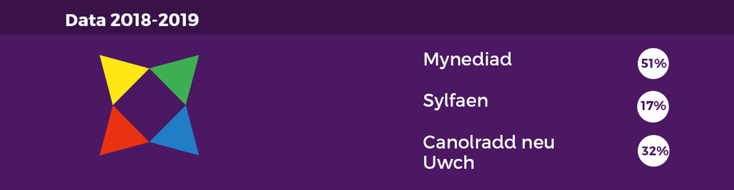 - 2017-2018 oedd y gwaelodlin cenedlaethol ac felly gallwn wneud cymariaethau blwyddyn ar flwyddyn wedi hyn.