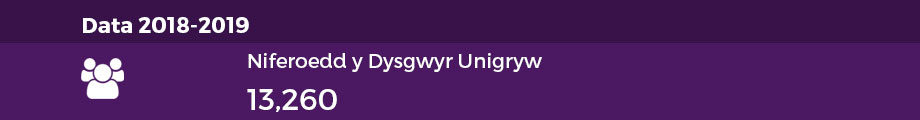 - Cymerodd dysgwyr 2018-2019 ran mewn 20,330 o weithgareddau dysgu, cynnydd o 4% o gymharu â 2017-2018.